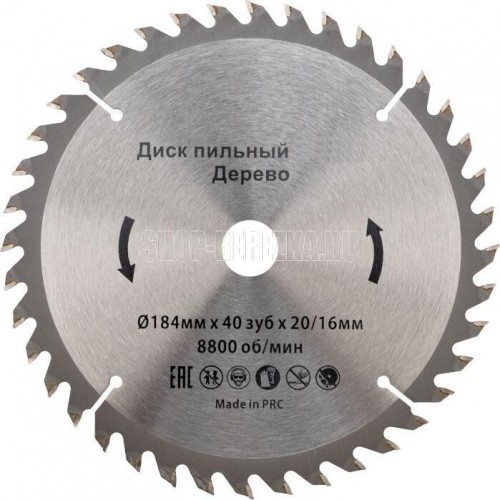 KRANZ (KR-92-0110) Диск пильный 184 мм х 40 зуб х 20/16 мм