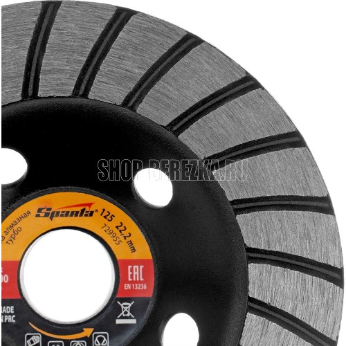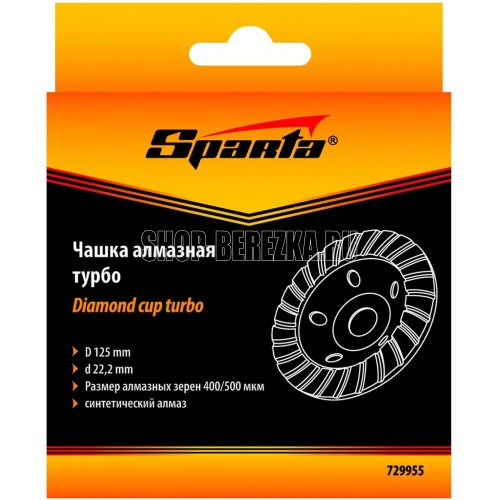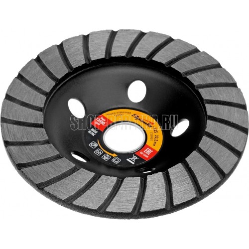 Алмазная зачистная чашка Sparta Turbo 729955 с посадочным отверстием 22,2 мм устанавливается на вал углошлифовальной машины, совместимой с оснасткой диаметром 125 мм. Применяется для точной шлифовки и придания гладкости поверхностям из бетона, гранита, мрамора, камня, а также кирпичной кладке. Пригодится для снятия фаски с гранитной или мраморной плиты. Движется плавно, удерживать ее можно без особых усилий. Алмазный слой высотой 4,5 мм позволяет эффективно выполнять поставленные задачи.