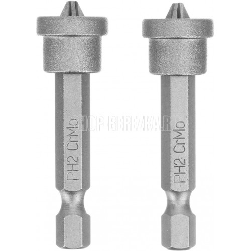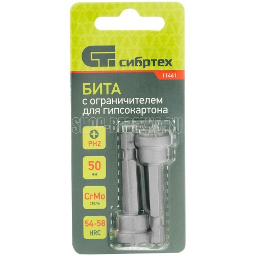 Бита для ГКЛ Сибртех 11461 из стали CrMo, типоразмера PH2 x 50 мм, с ограничителем, 2 шт. в уп.,