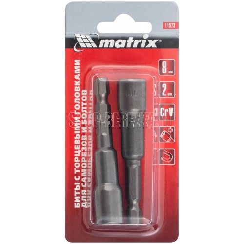 Биты с торцевыми головками Matrix 11573 размером 8 х 65 мм, 2 шт. в уп., предназначены для работ с шуруповертом.
