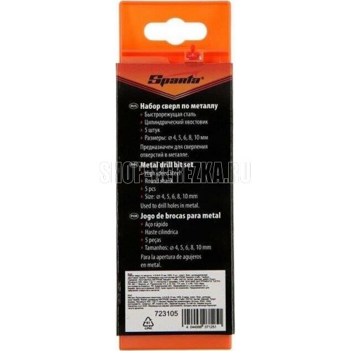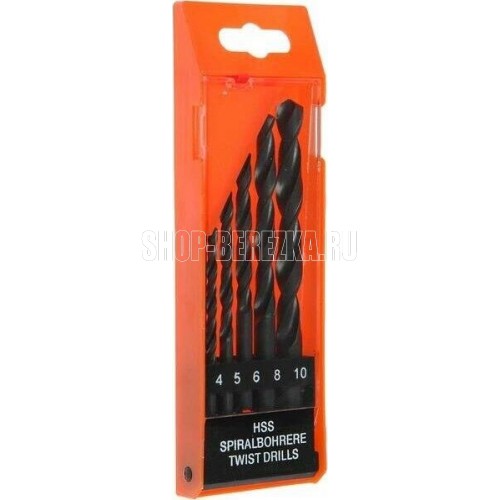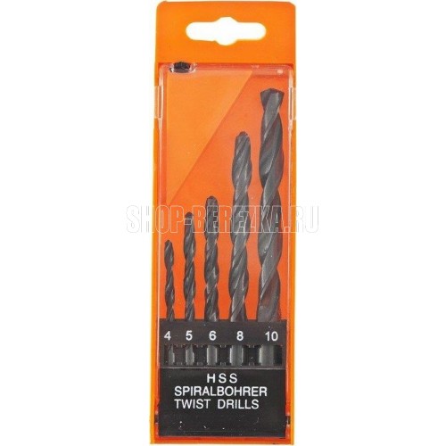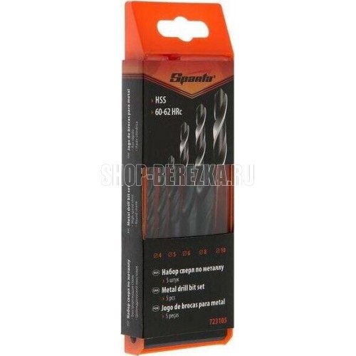 SPARTA Набор сверл по металлу, 4-5-6-8-10 мм, HSS, 5 шт, пластиковый бокс, цилиндрический хвостовик 723105