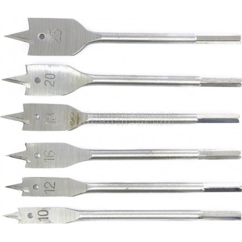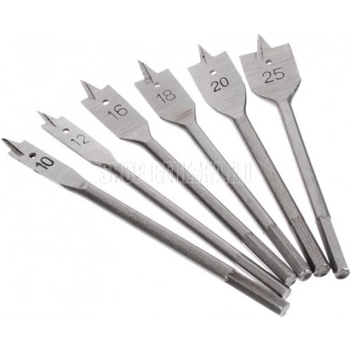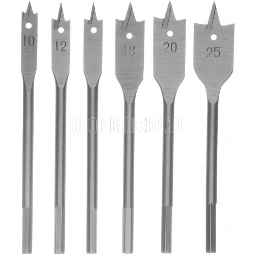 СИБРТЕХ Набор сверл перовых по дереву, 10-12-16-18-20-25 мм, 6 шт, шестигранный хвостовик 704155