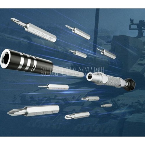 Набор отвёрток UGREEN 38 в 1, ручка из алюминиевого сплава, магнитный удлинитель, 36 насадок. Алюминиевая отвёртка с 36 битами из инструментальной легированной стали — это набор на все случаи жизни. А благодаря компактному пеналу для хранения с откидной крышкой-подставкой вы сможете всегда носить с собой весь комплект и пользоваться им с удобством. Отвёртка и биты уложены в пластиковый пенал. Крышка пенала прозрачная — позволяет увидеть все биты и найти нужную еще до того, как вы откроете пенал. Габариты корпуса всего 15?8,5?2,3 см. Такая компактная конструкция не займет много места в сумке или в салоне автомобиля, а при желании поместится даже в задний карман джинсов. Цвет товара черный Тип набор инструментов