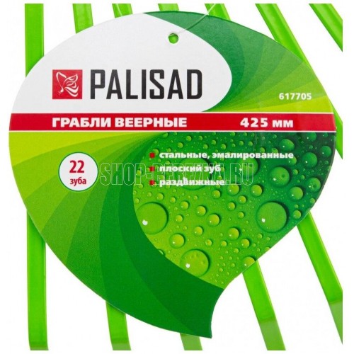 Грабли веерные стальные Palisad 617705, 425 мм, с 22 плоскими зубьями, эмалированные, без черенка, предназначены для очистки от мусора газонов, придомовых территорий и грядок. Незаменимы на дачном участке.ПреимуществаГрабли изготовлены из среднеуглеродистой стали и покрыты порошковой эмалью, поэтому они долговечны и не боятся коррозии.Поперечная планка повышает прочность инструмента и его устойчивость к нагрузкам.Грабли можно установить на любой удобный черенок диаметром 25 мм.