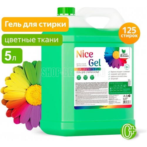 CLEAN&GREEN Гель для стирки "Nice Gel" для цветных тканей (концентрат) 5 л. (ПЭНД) CG8287