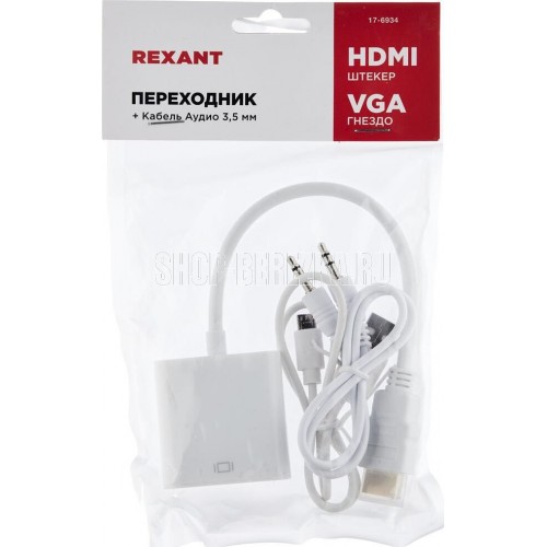 REXANT (17-6934) Переходник штекер HDMI - гнездо VGA провод + 3.5мм с питанием белый