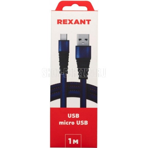REXANT (18-1163) Кабель REXANT USB-microUSB 1 м, плоский провод, синяя джинсовая оплетка