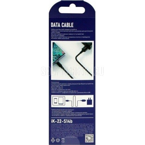 SMARTBUY (iK-22-S14b) S14 MicroUSB черный, 3 А, 2 м