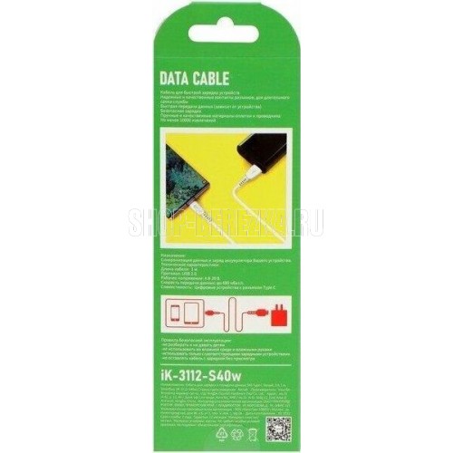 SMARTBUY (iK-3112-S40w) S40 Type C белый, 3 А, 1 м