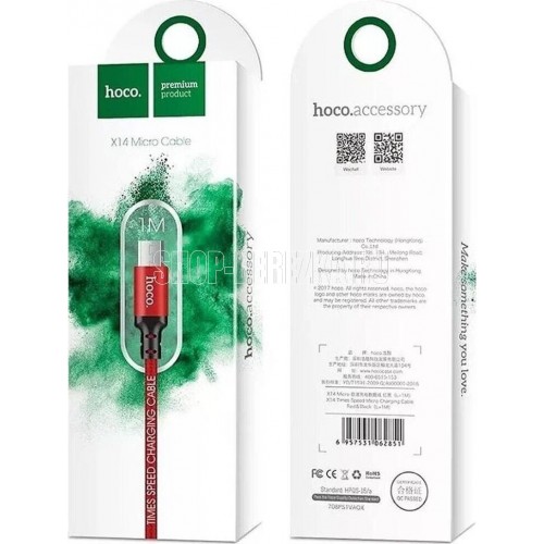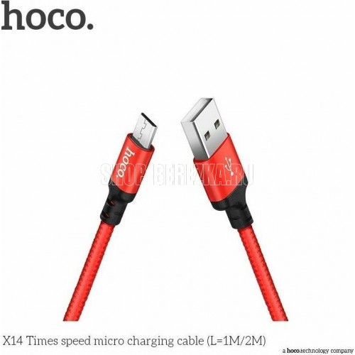 HOCO (6957531062851) X14 USB (m)-microUSB (m) 1.0м - красный/черный