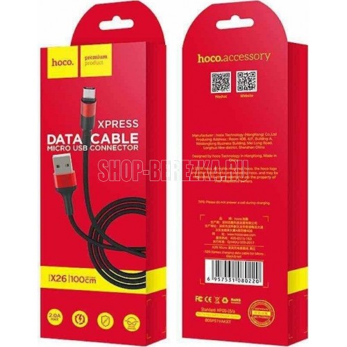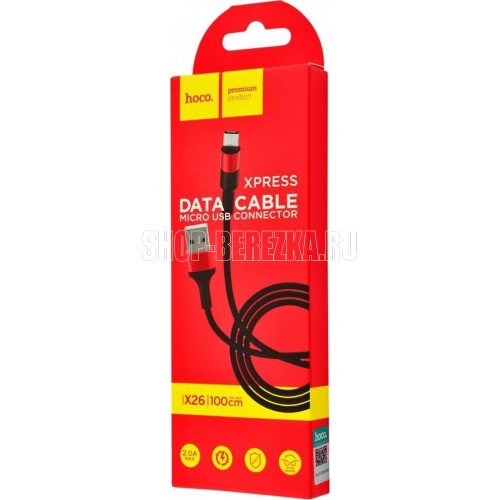 HOCO (6957531080220) X26 USB (m)-microUSB (m) 1.0м - красный/черный
