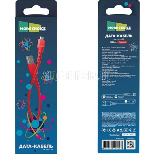 MORE CHOICE (4627151193090) K16m USB (m)-microUSB (m) 1.0м - красный