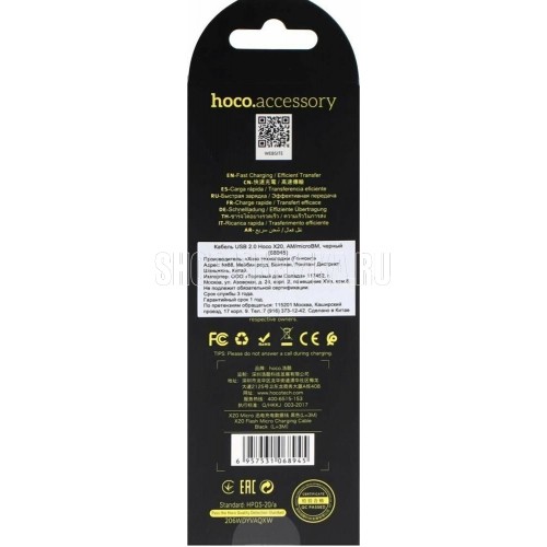 HOCO (6957531068945) X20 USB (m)-microUSB (m) 3.0м - черный
