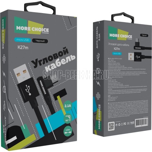 MORE CHOICE (4627151196947) K27m USB 2.1A microUSB черный - 1,0m