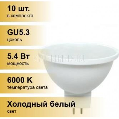 MR16, мощноть 5,4W, 220V, GU5.3, свет 6000K, матовое стекло (композит) 52x50 мм.