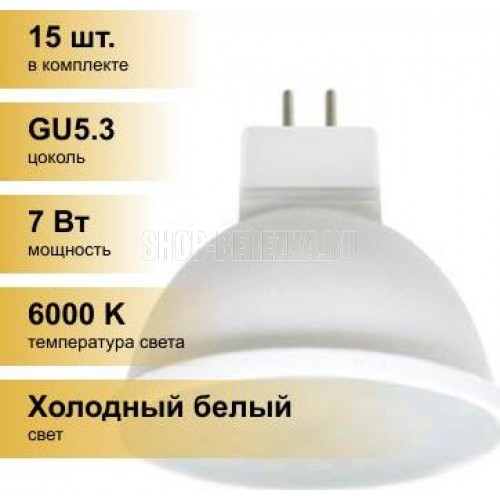 Цоколь GU5.3, Мощность 7,0W, Цветовая температура 6000K, Размер 48x50 мм, Напряжение 220В, Средний срок службы 30000 часов