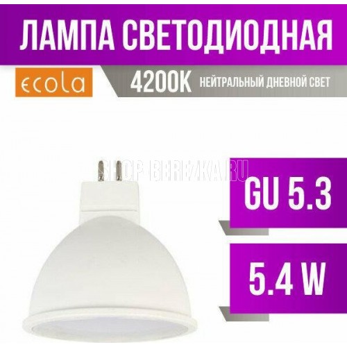 ECOLA MR16 LED Premium 5,4W 220V GU5.3 4200K матовое стекло (композит) 48x50 Цоколь GU5.3 Цветовая температура 4200К Мощность 5,4W Напряжение 220В Размер 48x50 мм