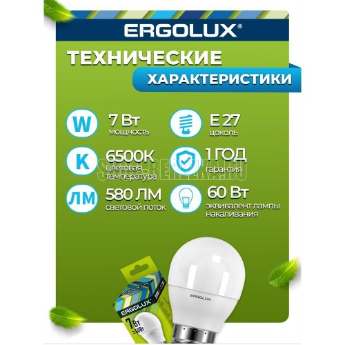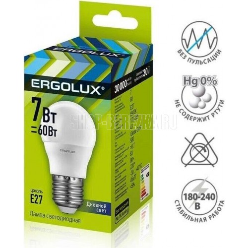 ERGOLUX (12877) LED-G45-7W-E27-6K