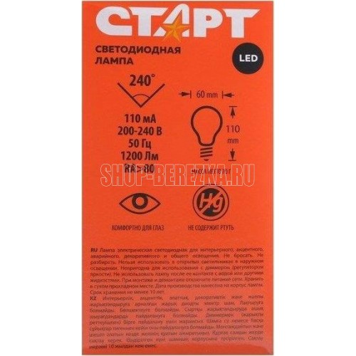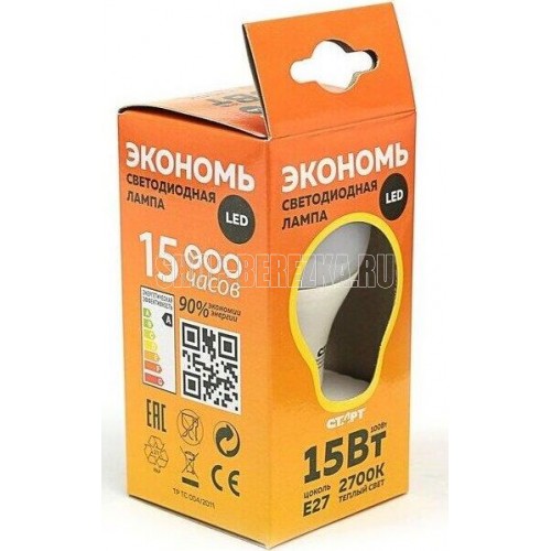 | ОБЩИЕ | Лампа светодиодная СТАРТ Экономь ECO LED GLS, E27, 15Вт |