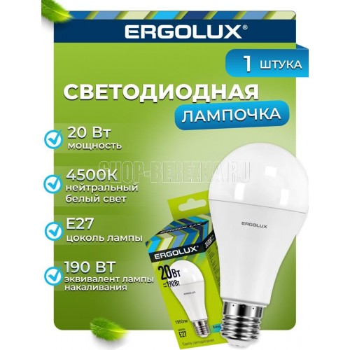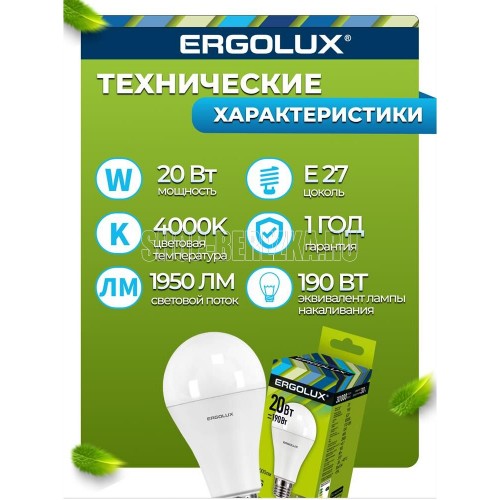 | ОБЩИЕ | Лампа Ergolux E27 A65 20Вт 4500K |