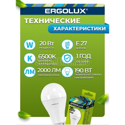 ОБЩИЕ Лампа Ergolux E27 A65 20Вт 6500K