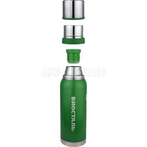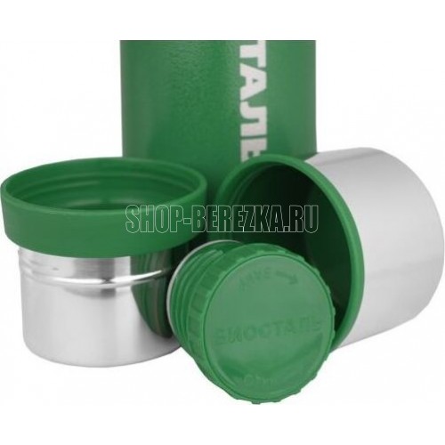 Термос "БИОСТАЛЬ-ОХОТА" с узкой горл., 2 ЧАШКИ, ЗЕЛЕНЫЙ, 0.75 л. * Термос с узким горлом , покрытый "молотковой" эмалью относится к серии «ОХОТА». Термосы этой серии вобрали в себя самые передовые энергосберегающие технологии и отличаются применением более совершенных термоизоляционных материалов, а так же новейшей технологией по откачке вакуума. Термос предназначен для хранения горячих и холодных напитков (чая, кофе и пр.) и укомплектован пробкой без кнопки и двумя крышками-чашками. Пробка без кнопки надежна, проста в использовании и позволяет дольше сохранять тепло благодаря дополнительной теплоизоляции. А чашки удобной ёмкости (150 мл и 200 мл) позволяют использовать термос с наибольшим удобством. * 550 г * 9,5см х 9,5см х 25,5см * 19 часов