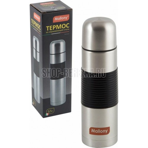Емкость 0,5 л. Материал: корпус – нержавеющая сталь с силиконовыми вставками, колба – нержавеющая сталь s/s 201, полипропилен. - Колба из нерж стали с двойными стенками. - Герметичный клапан (пробка) с кнопкой - Ширина горла 4,5 см Термос предназначен для хранения горячих и холодных напитков, супов и других жидкостей. Укомплектован пробкой с кнопкой. Такая пробка удобна в использовании и позволяет, не отвинчивая ее, наливать напитки после простого нажатия. Термос оснащен крышкой-чашкой. Упаковка: цветная коробка