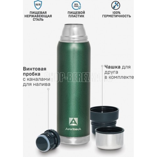 Термос "Биосталь-Охота" с узкой горловиной, в чехле объем: 0.75 л корпус из стали, особенности: крыш..