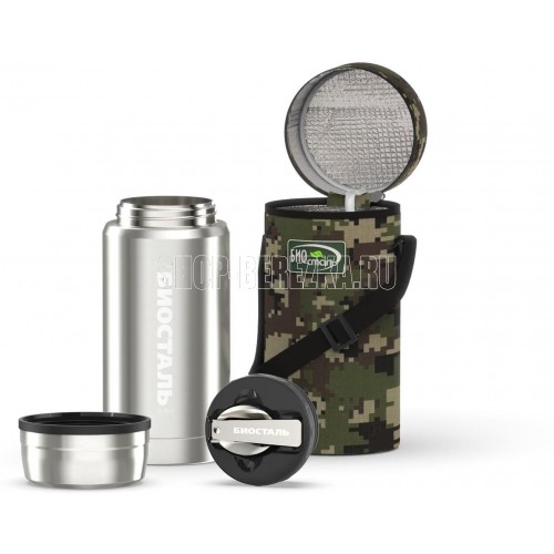 Термос "Биосталь-Охота" с узкой горловиной, в чехле объем: 0.75 л корпус из стали, особенности: крыш..