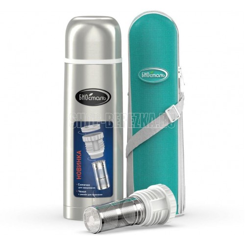 Термос "Биосталь-Охота" с узкой горловиной, в чехле объем: 0.75 л корпус из стали, особенности: крыш..