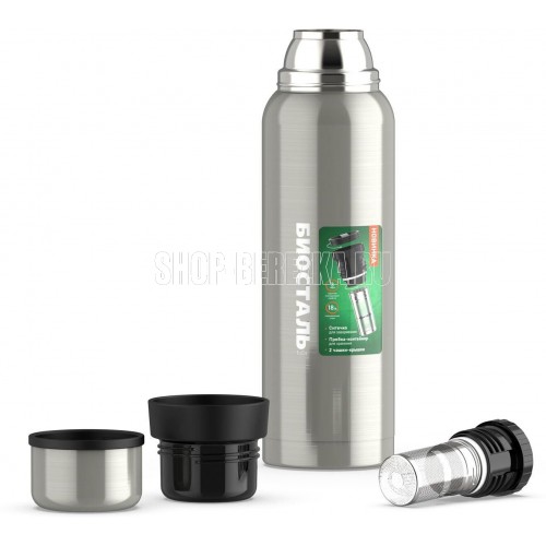 Литровый термос с узким корпусом, с ситечком для заваривания и пробкой-контейнером для хранения. Пробка с функцией «термоконтроль» позволяет наливать напитки без полного откручивания пробки под любым углом. Термос комплектуется двумя чашками: крышкой-чашкой на 110 мл и дополнительной пластиковой чашкой на 160 мл. Термос и съёмное ситечко изготовлены из высококачественной нержавеющей стали 18/8 (AISI 304). Корпус термоса NBR-1000ZT покрыт защитным матовым лаком. Корпус термоса NBR-1000ZT-G покрыт защитной цветной молотковой эмалью.