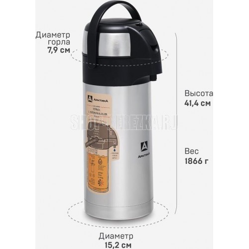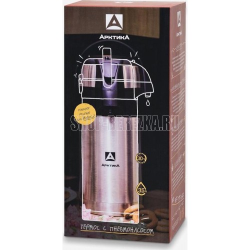 Термос с пневмонасосом, глухая пробка с термоизолятором, кнобка для налива,удобная ручка