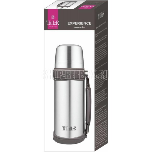 Термос стальной Experience, 1 л , полировка матовая. Кнопочный переключатель, узкое горло, стопер, ремень, ручка. Цвет - сталь. • Высококачественная нержавеющая сталь 18/10, пищевой пластик • Высота (включая внешнюю крышку): 28.5 см • Диаметр термос