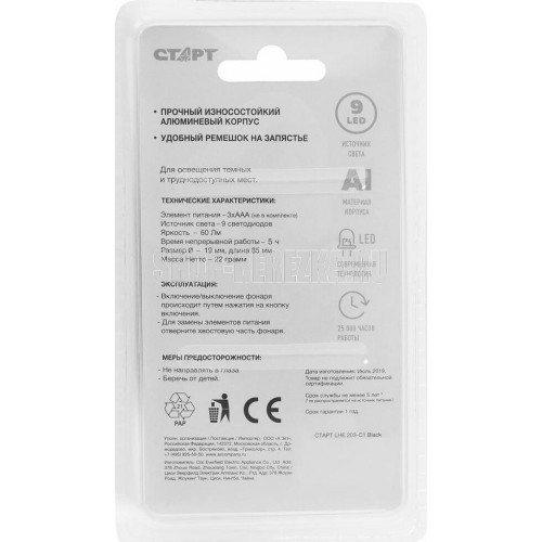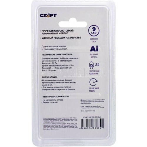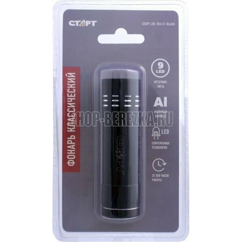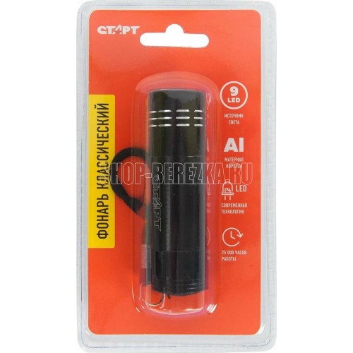 Источник света - 9хLED. Сила света - 11000-13000мкд. Тип элемента питания - 3хAAA (н/к). Материал корпуса - алюминий. Цвет - черный.