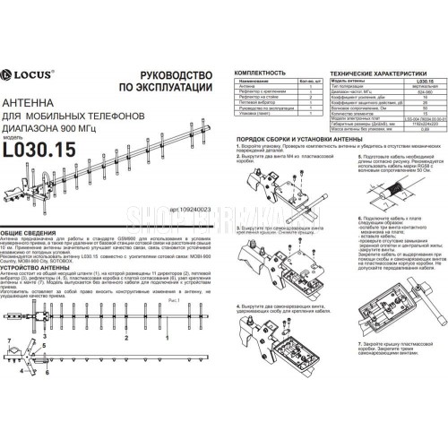 Антенна наружная, для работы в стандарте GSM -900( 824-960 МГц), коэффициент усиления - 16дБи ,волновое сопротивление, Ом - 50, количество элементов - 15, для использования в особо сложных условиях приема, связь становится устойчивой независимо от погодных условий, уверенный прием при удалении от базовой станции сотовой связи на расстоянии - свыше 10 км.