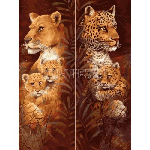 Холст на подрамнике с нанесенным рисунком, контрольный лист с нанесенной схемой, набор акриловых красок, кисти – 4 шт., крепление для готовой картины, пакет с zip-застежкой 23 х 17,5 см