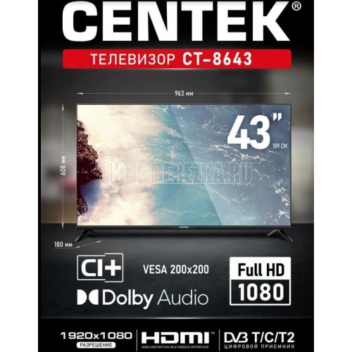 Размер панели 43’’ (Full HD). Макс. разрешение 1920 х 1080. Соотношение сторон 16: 9. Контрастность 1200: 1. Яркость 220 кд/м2. Частота обновления 60 Гц. Напряжение 220-240 В; 50/60 Гц. Аудиовыход 2х8 Вт. Мощность 65 Вт. Вес нетто/брутто (кг)6.8 / 8.5. Угол обзора (L/R)170/170. Видео стандартыPAL/SECAM. Расстояние между креплениями/тип болта 200x200/M6. Частота обновления (Гц)60. Время отклика (TR+TF/TYPE) (мс)6.5. Операционная система Non-OS. Объем модуля памяти DDR (Мб)128 Flash-память (Мб)8. Цифровые тюнерыDVB T/T2/C. 3D-гребенчатый фильтр есть. Динамическое шумоподавление есть. Баланс есть. Стерео NICAM/A2. Таймер сна есть. Родительский контроль есть.