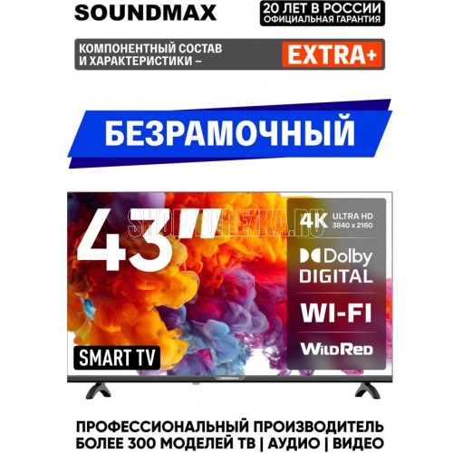 SOUNDMAX SM-LED43M01SU UHD SMART TV Android Безрамочный