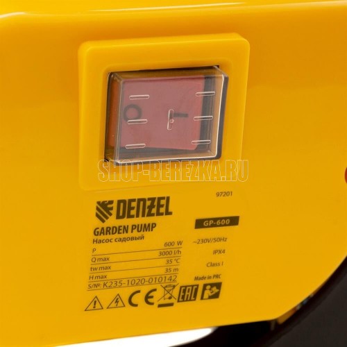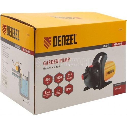 DENZEL Садовый поверхностный насос GP600, 600 Вт, 3000 л/ч, подъем 35 м, пластик 97201