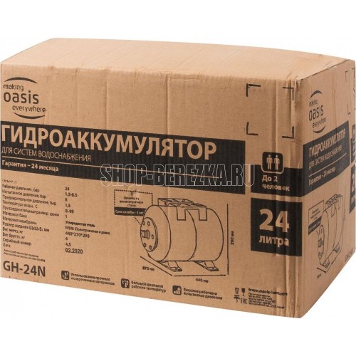 Объем, л 24 Рабочее давление, бар 1.5-6.5. Испытанное давление, бар 8. Минимальная температура, °С 0. Максимальная температура, °С 99. Предварительное давление, бар 1.5. Материал бака Углеродистая сталь. Материал мембраны EPDM (Полипропилен и диен). Вес нетто, кг 4.