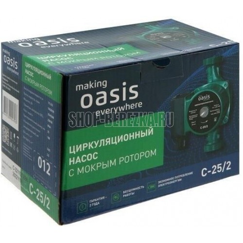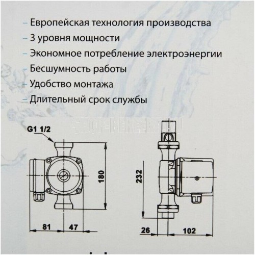 Циркуляционный насос с мокрым ротором (без провода), Максимальная высота подъема жидкости 2 м, максимальный проток жидкости 30 л/мин, максимальная мощность 60 Вт, установочное расстояние между фитингами 180 мм, керамический вал и подшипники, медная обмотка двигателя