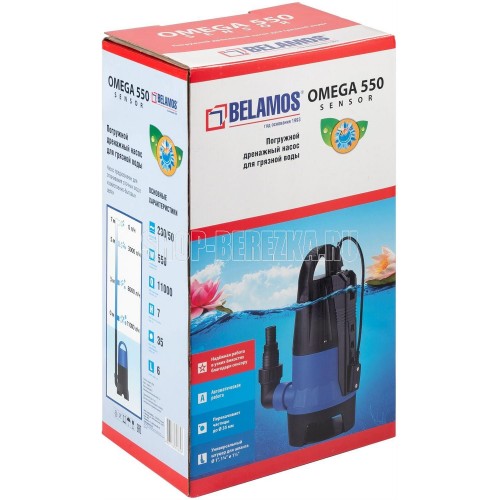 Насос погружной Omega 550 SENSOR, 550Вт, напор 7м, 183 л.м., кабель 6м, 4шт в коробке, частицы до 35 мм, корпус пластик, сенсорный поплавок, дренажно-фекальный