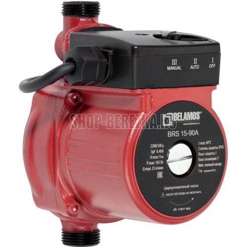 Циркуляционный насос BRS15/90А (160мм), мощность 105Вт, кабель 1 м с евровилкой и гайки в комплекте, повысительный насос, 2 режима работы: автоматический и ручной, 8шт/320шт