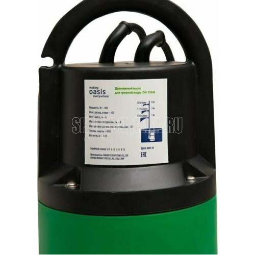 Мощность, Вт - 400. Макс. расход, л/мин - 150. Макс. напор, м - 6. Макс. глубина погружения, м - 8. Макс. размер пропускаемых частиц, мм - 35. Материал корпуса насоса - Пластик. Длина кабеля, м - 10. Материал крыльчатки - Пластик. Габаритные размеры, см - 17х15,8х31,3.