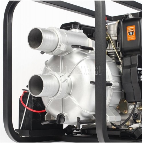 Макс. напор, м 25, Макс. глубина всасывания, м 8, Производительность, м3/час 75, Объем двигателя, см3 296, Диаметр выходного отверстия, дюйм 3, Тип топлива Дизель, Тактность двигателя 4-х тактный, Система старта электро+АКБ, Мощность двигателя, л.с. 5.7.