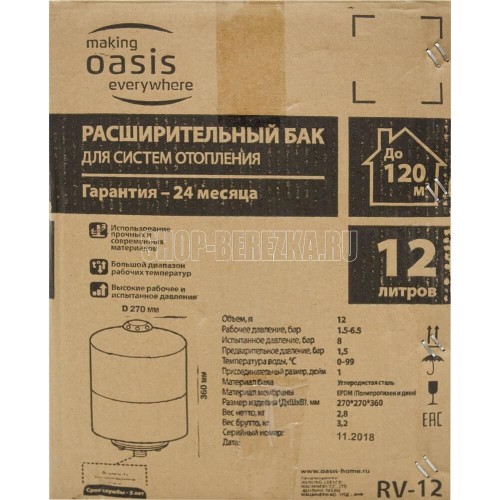 Объем, л12. Рабочее давление, бар 1.5-6.5. Испытанное давление, бар 8. Минимальная температура, °С 0. Максимальная температура, °С 99. Предварительное давление, бар 1.5. Материал бака Углеродистая сталь. Материал мембраны EPDM (Полипропилен и диен). Вес нетто, кг 2,8. Производство Китай.