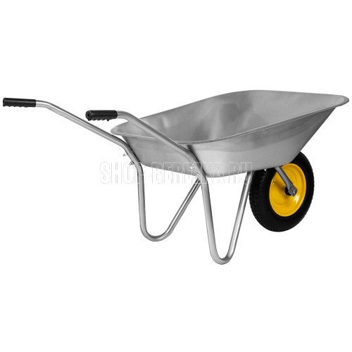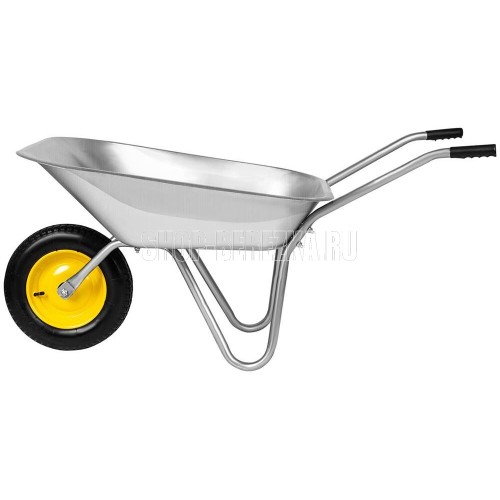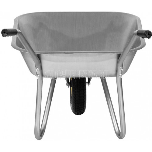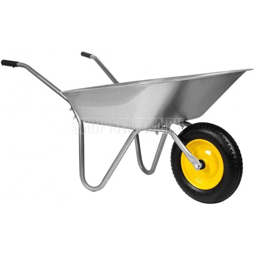 Тачка, садовая, грузоподъемность 90 кг, объем 65 л 689845. Завальцованные борта и полка обеспечивают прочность верхнего края кузова.