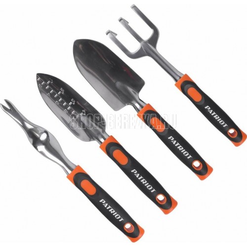 Набор садового инструмента Patriot GTP 4 с алюминиевым цельнолитым корпусом предназначен для ухода за растительностью на клумбах, грядках, в парниках и теплицах. Лопатки: 2 шт. Корнеудалитель. Вилка посадочная.