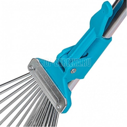 Грабли веерные стальные Palisad 61787, 190-600 х 790-1620 мм, раздвижные с 15 зубьями и стальным черенком, пригодятся для работы на дачном участке. Они используются при уборке веток, мусора, опавших плодов с газонов и грядок.ПреимуществаИнструмент изготовлен из хромированной среднеуглеродистой стали, поэтому устойчив к нагрузкам и коррозии.Ширину рабочей части и длину черенка можно регулировать, что повышает комфортность работы.Поперечная планка на основании увеличивает прочность рабочей части.Благодаря пластиковому подвесу на черенке грабли удобно хранить.