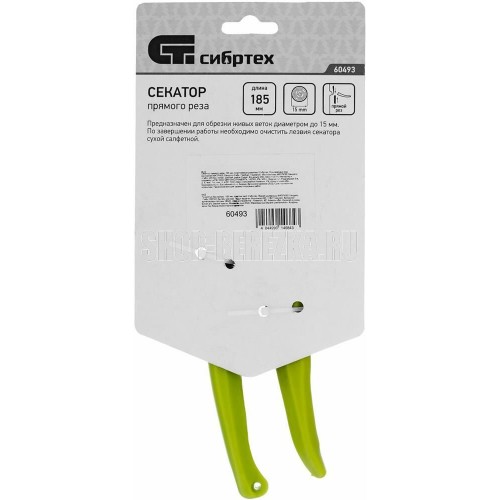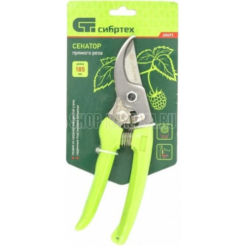 Секатор прямого реза Сибртех 60493 длиной 185 мм, с пластиковыми рукоятками, используется в саду и огороде для срезания живых веток диаметром до 15 мм. Движущиеся в параллельных плоскостях лезвия быстро и аккуратно срезают ветку, минимизируя потери сока. У секатора имеется регулировочный винт, позволяющий менять плотность примыкания лезвий.Преимущества Прочность и долговечность — лезвия изготовлены из среднеуглеродистой стали, полипропиленовые рукоятки устойчивы к воздействию ультрафиолета. Высокая износостойкость — режущая кромка закалена индукционным способом и имеет прецизионную заточку. Защита от разрушения — лезвия покрыты антикоррозионным маслом. Комфортная работа — эргономичные рукоятки удобно ложатся в руку. Безопасное хранение и транспортировка — фиксатор удерживает лезвия сомкнутыми и не дает им раскрыться.